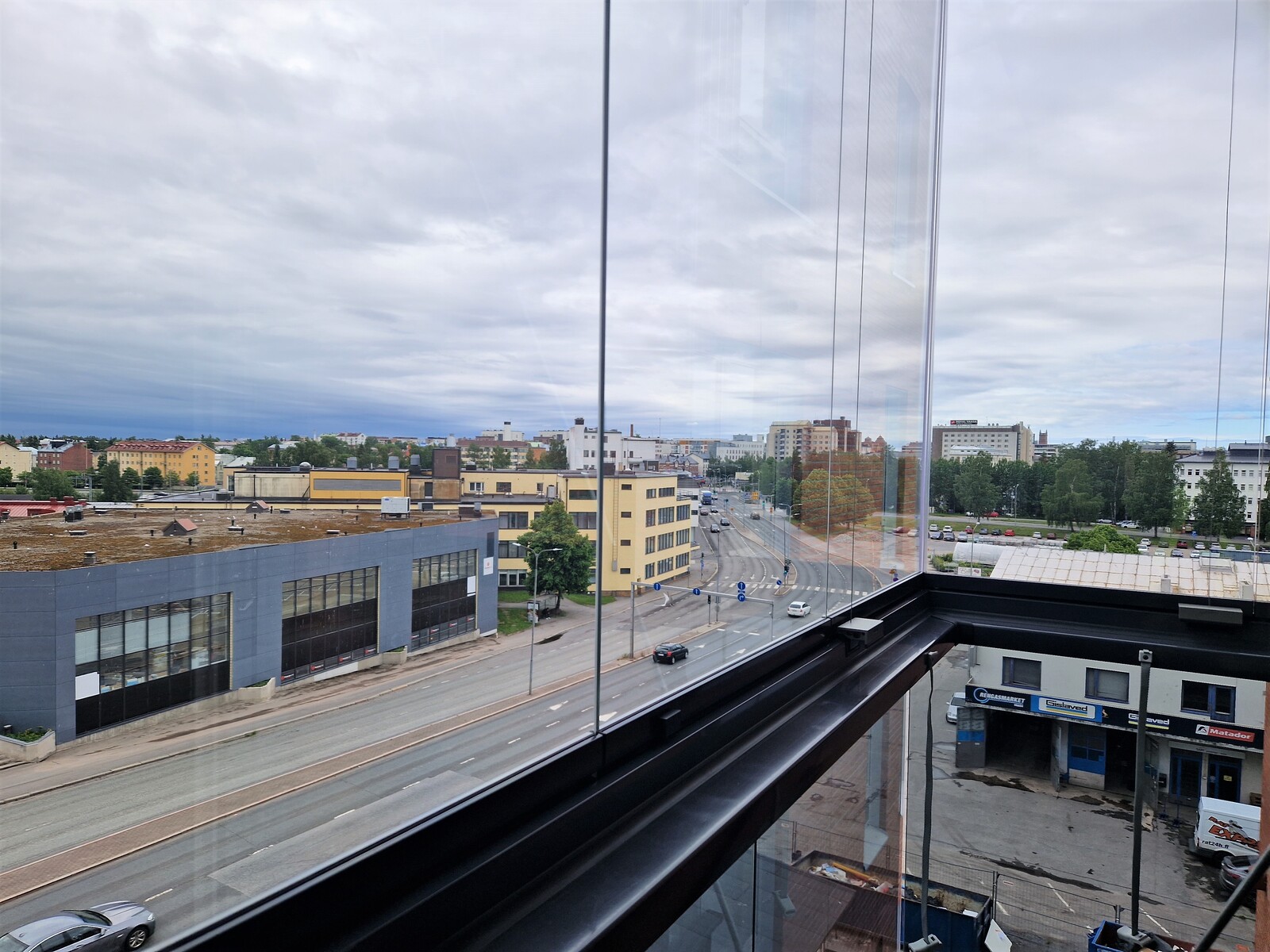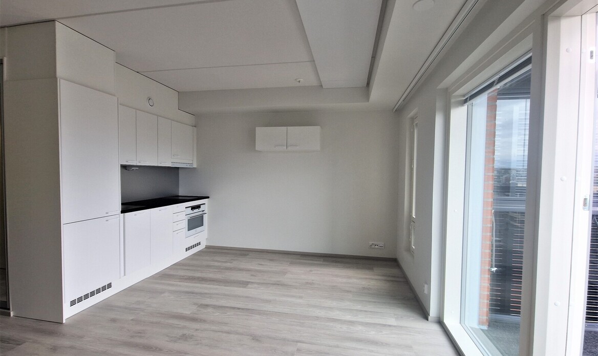 Etsimme vuokralaista 5. kerroksen tasokkaaseen ja moderniin yksiöön, josta upeat kaupunki näkymät!