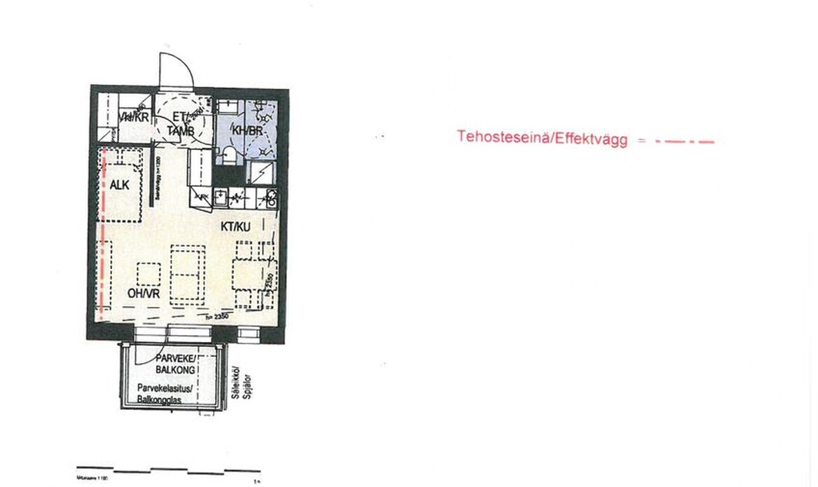 Tilojen kuvausHuoneistossa vinyylilankku lattialla.