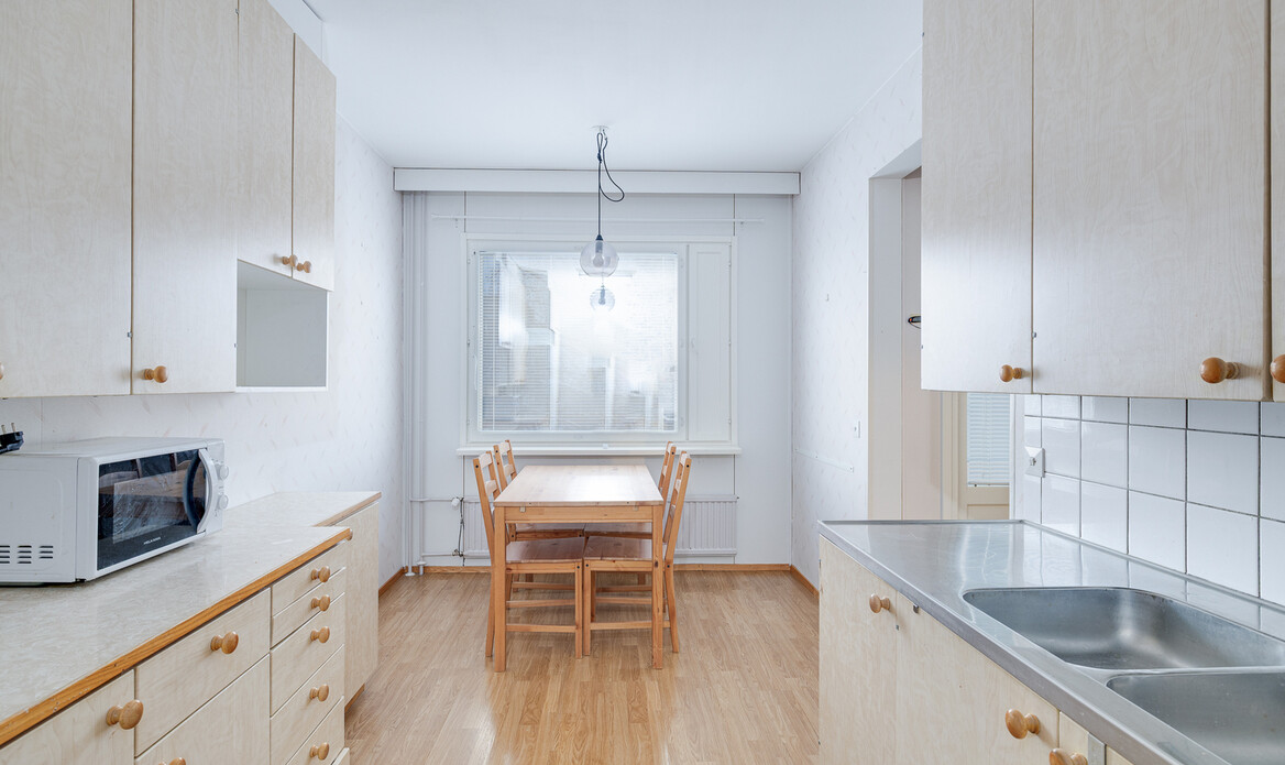 Keittiön kuvausLattiamateriaalit: laminaatti