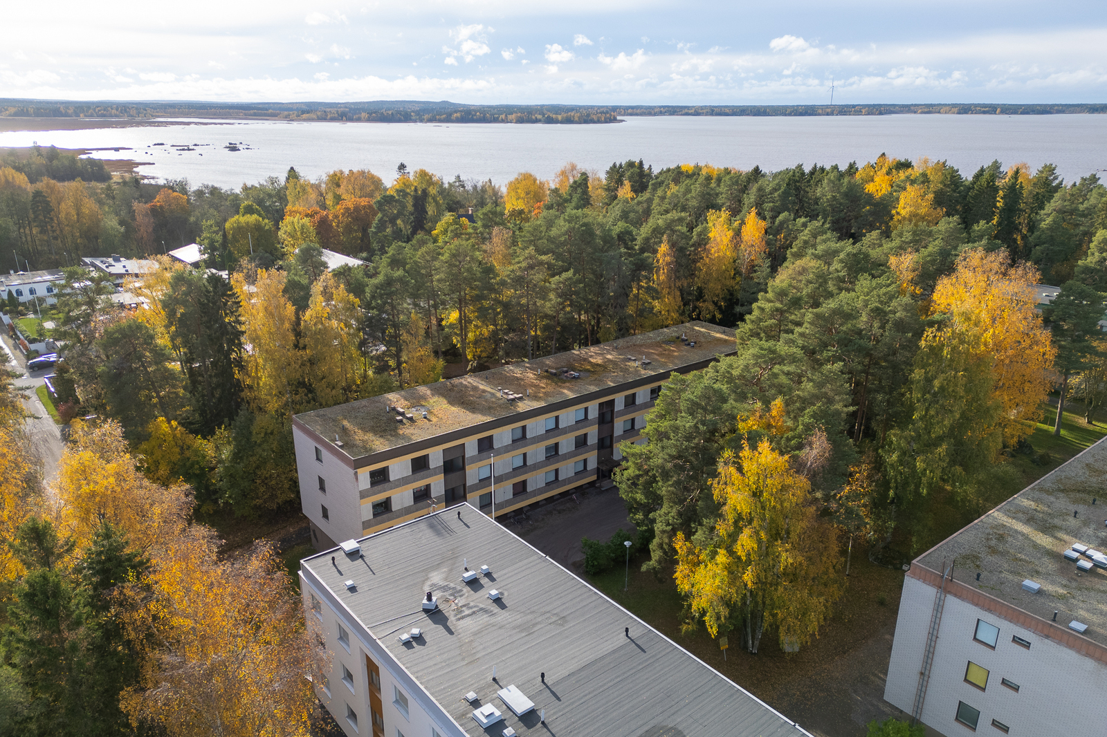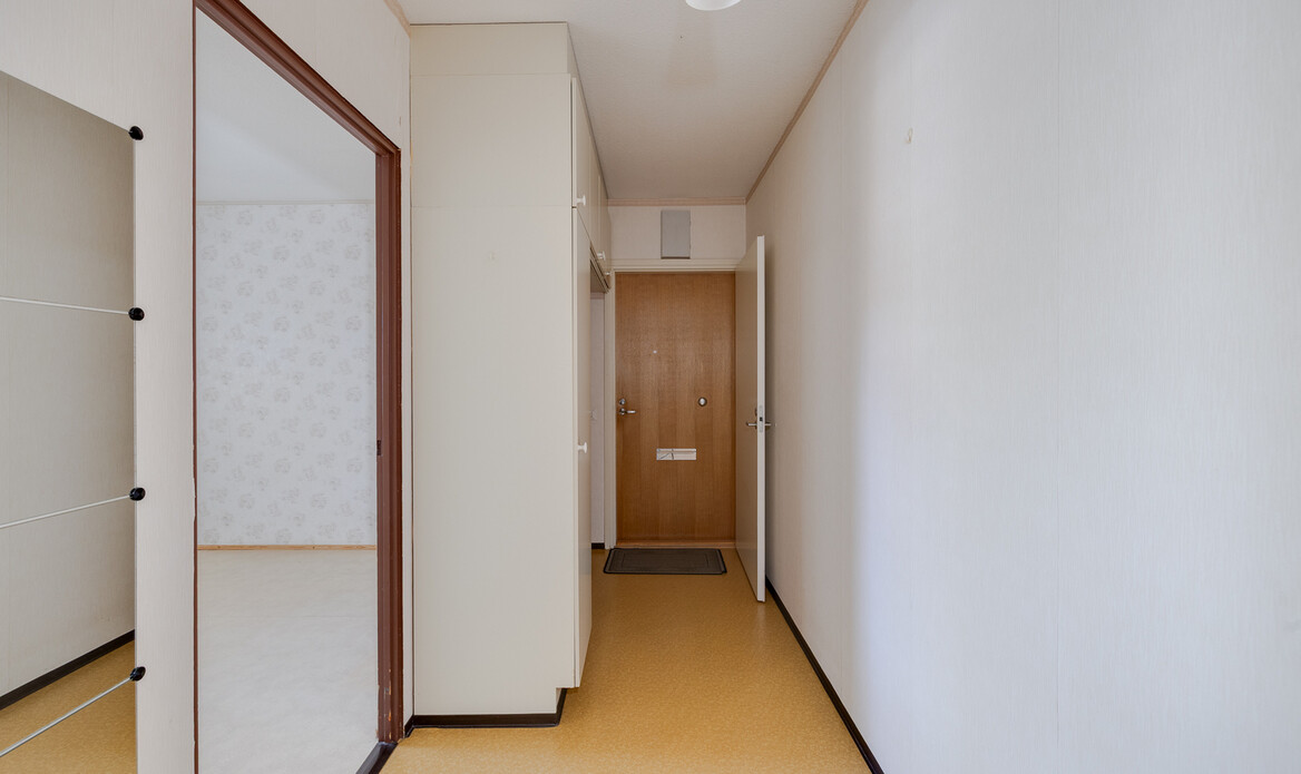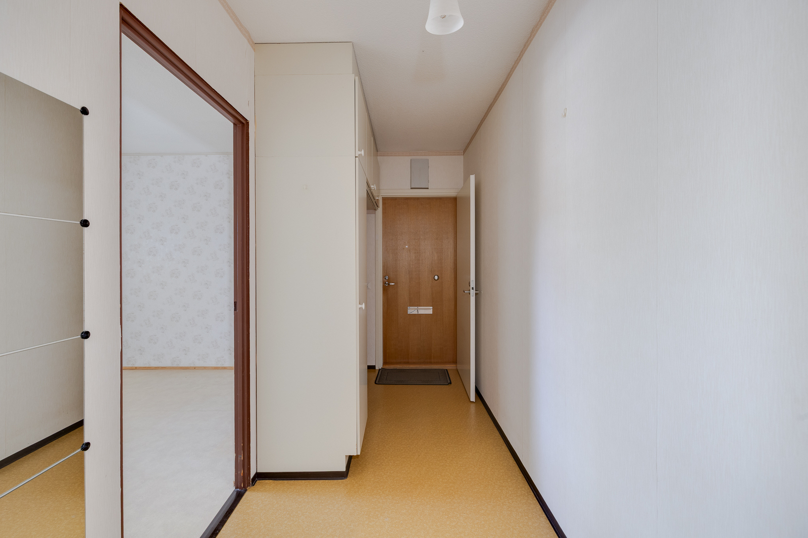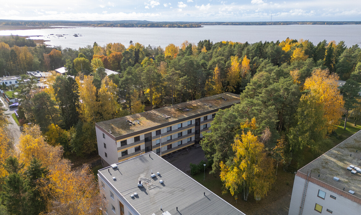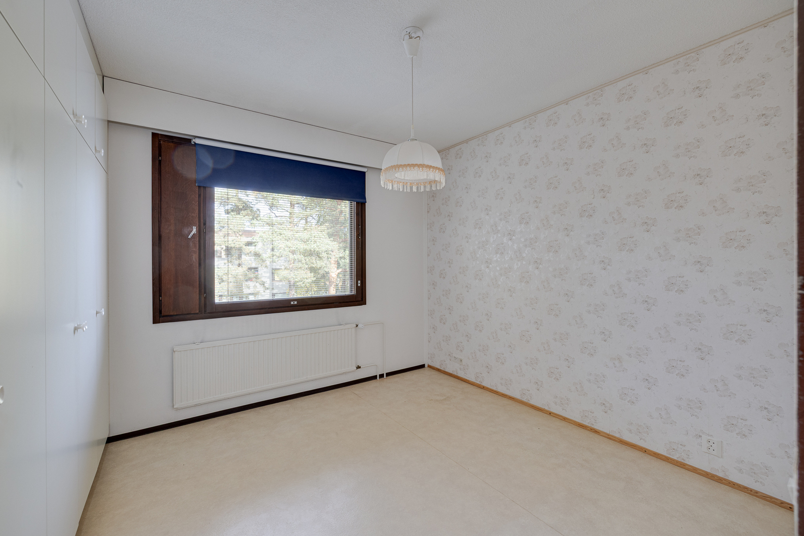 Huoneisto on alkuperäiskuntoinen ja pinnoiltaan ikäänsä nähden siisti. Jää-/pakastinkaappi uusittu jokunen vuosi sitten. Avarasta olohuoneesta käynti lasitetulle parvekkeelle, josta metsäinen näkymä.