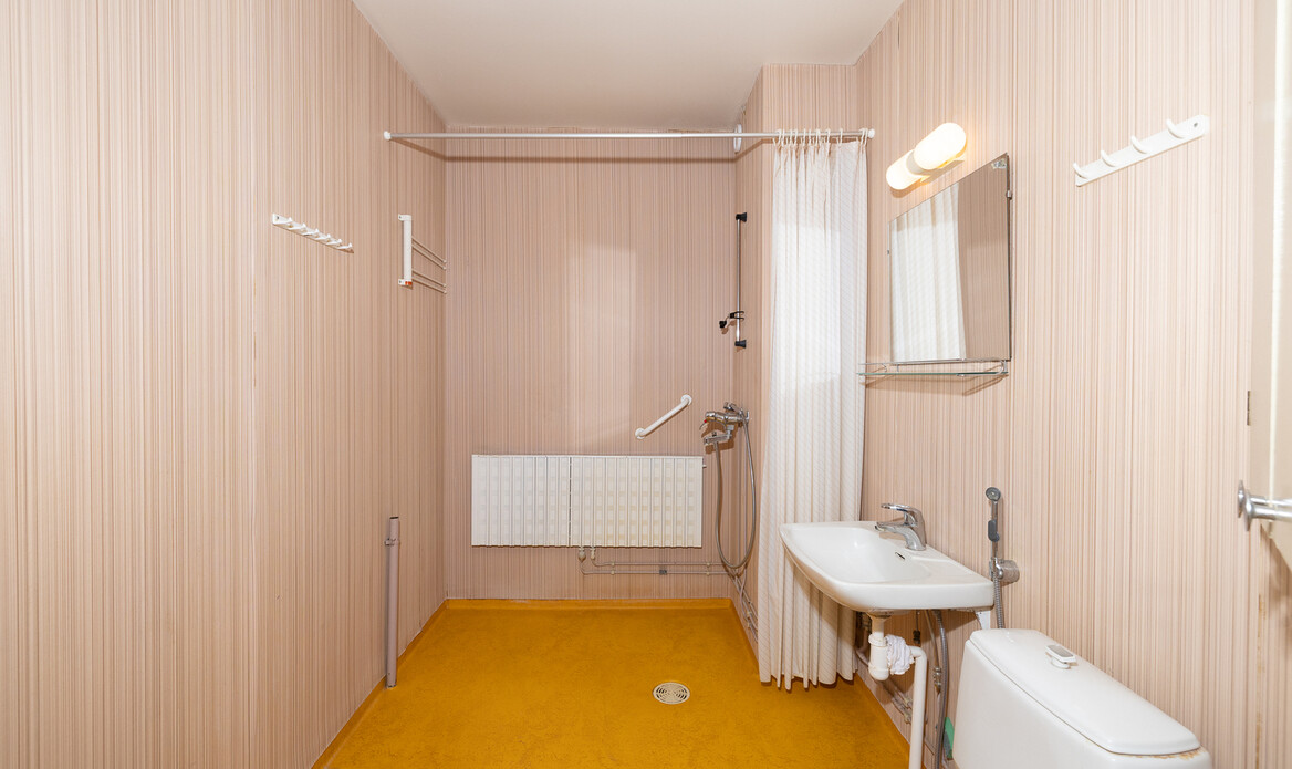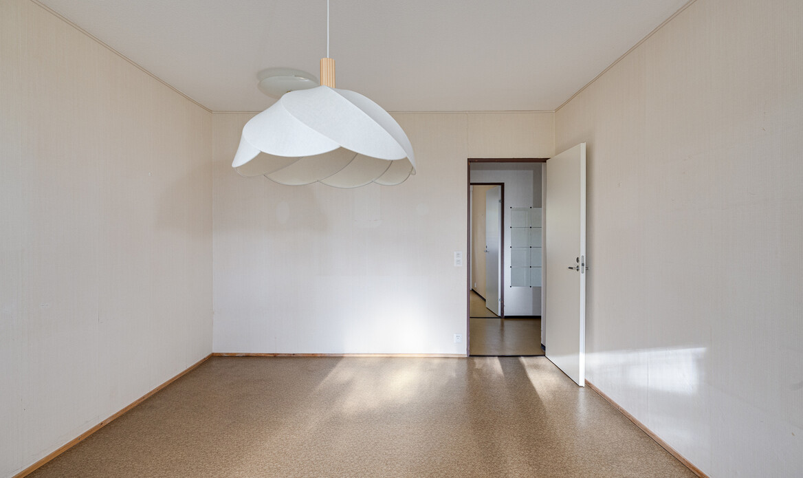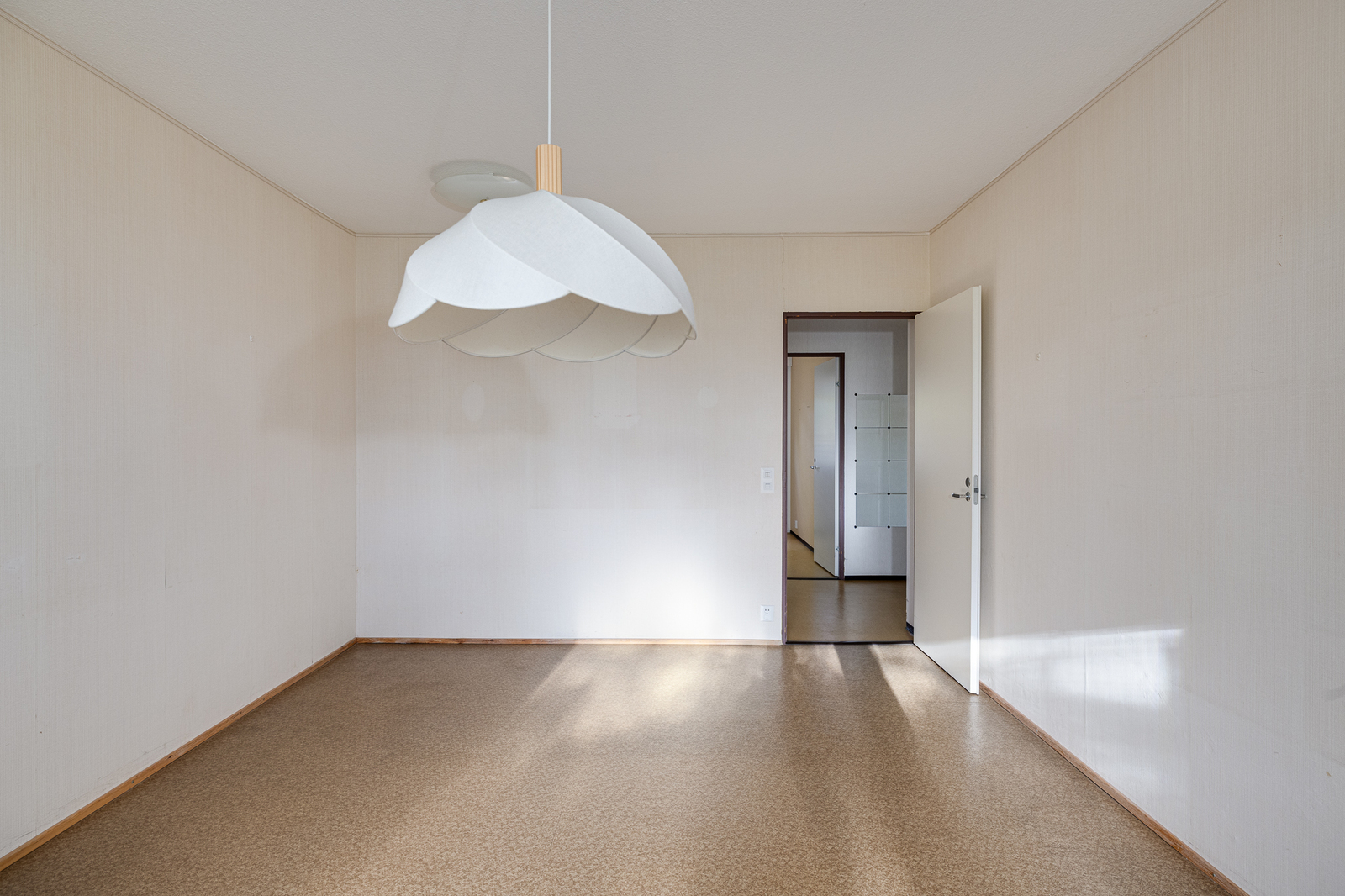 Lägenheten är i originalskick och ytorna är dock rena med tanke på dess ålder. Kyl-/frysskåpet byttes ut för några år sedan. Det rymliga vardagsrummet har tillgång till en inglasad balkong med trädbevuxen utsikt.