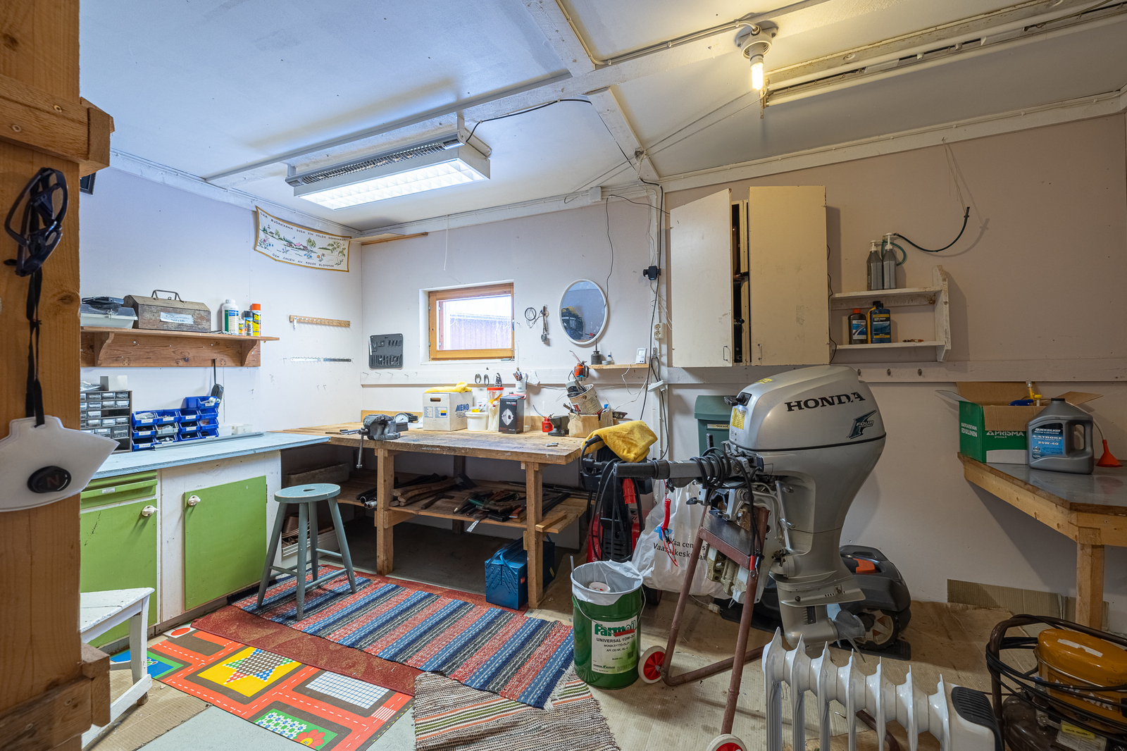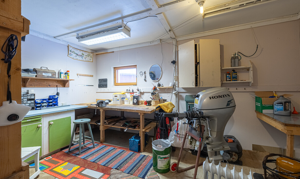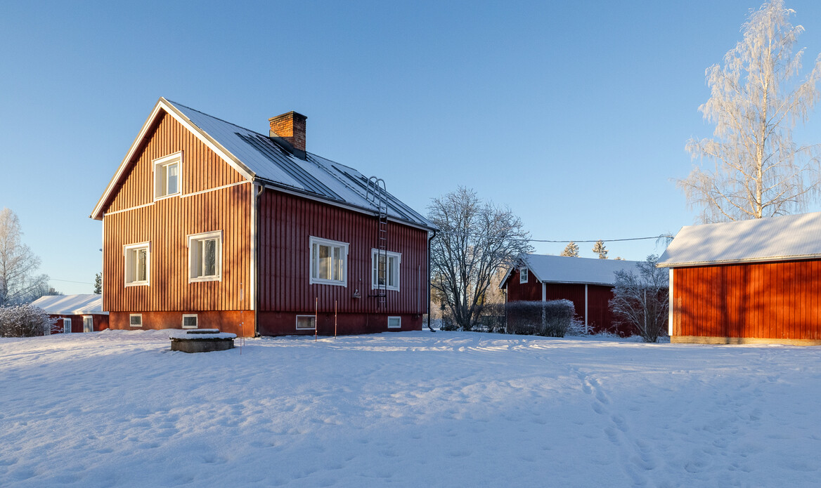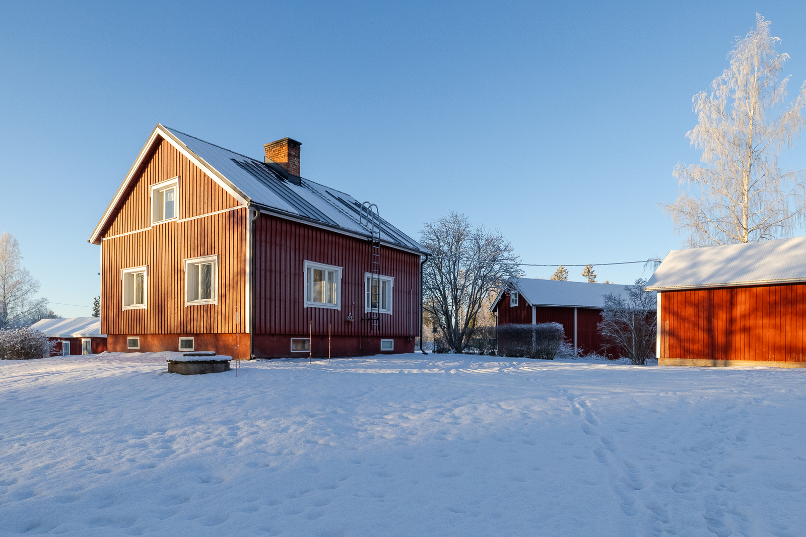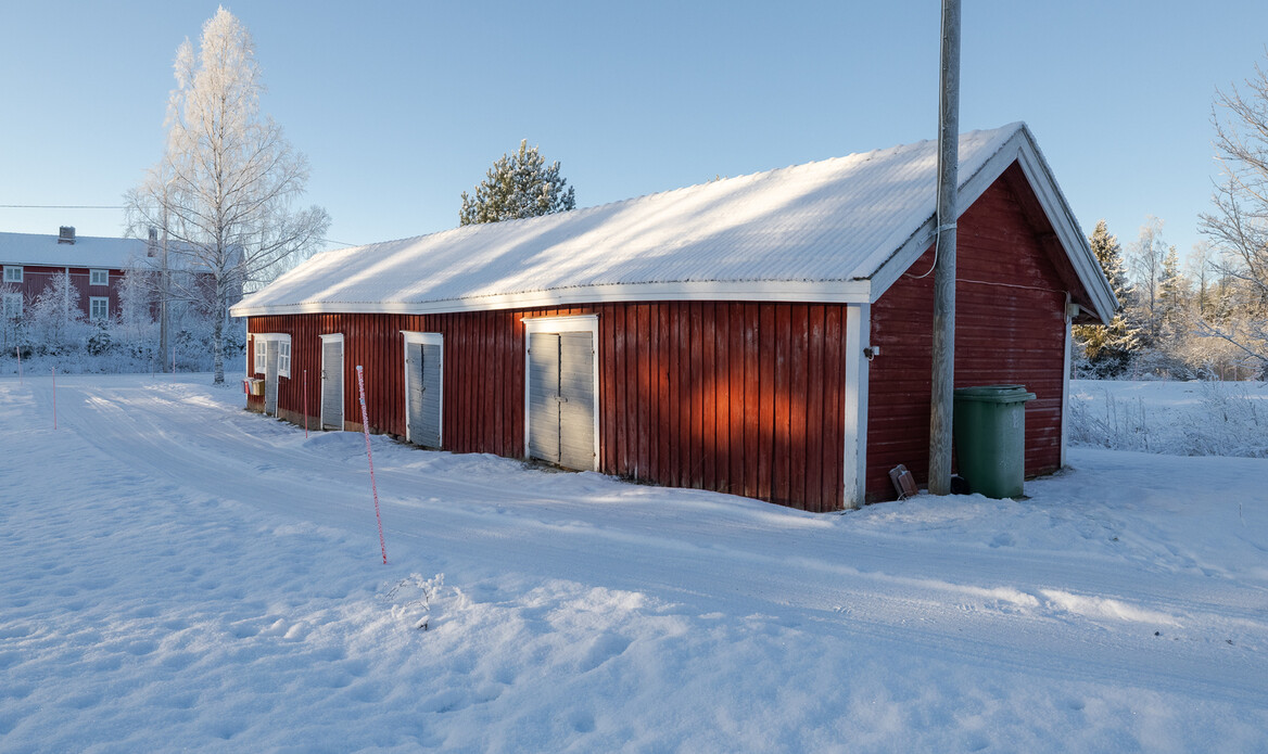 Gårdsplanens stadiga uthusbyggnader erbjuder utmärkta förutsättningar för hobbyer, snickeri eller förvaring. En del av utrymmet i en av uthusbyggnaderna är värmeisolerad.