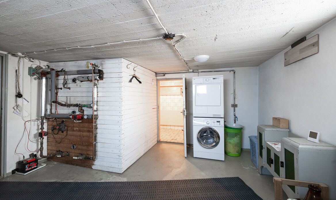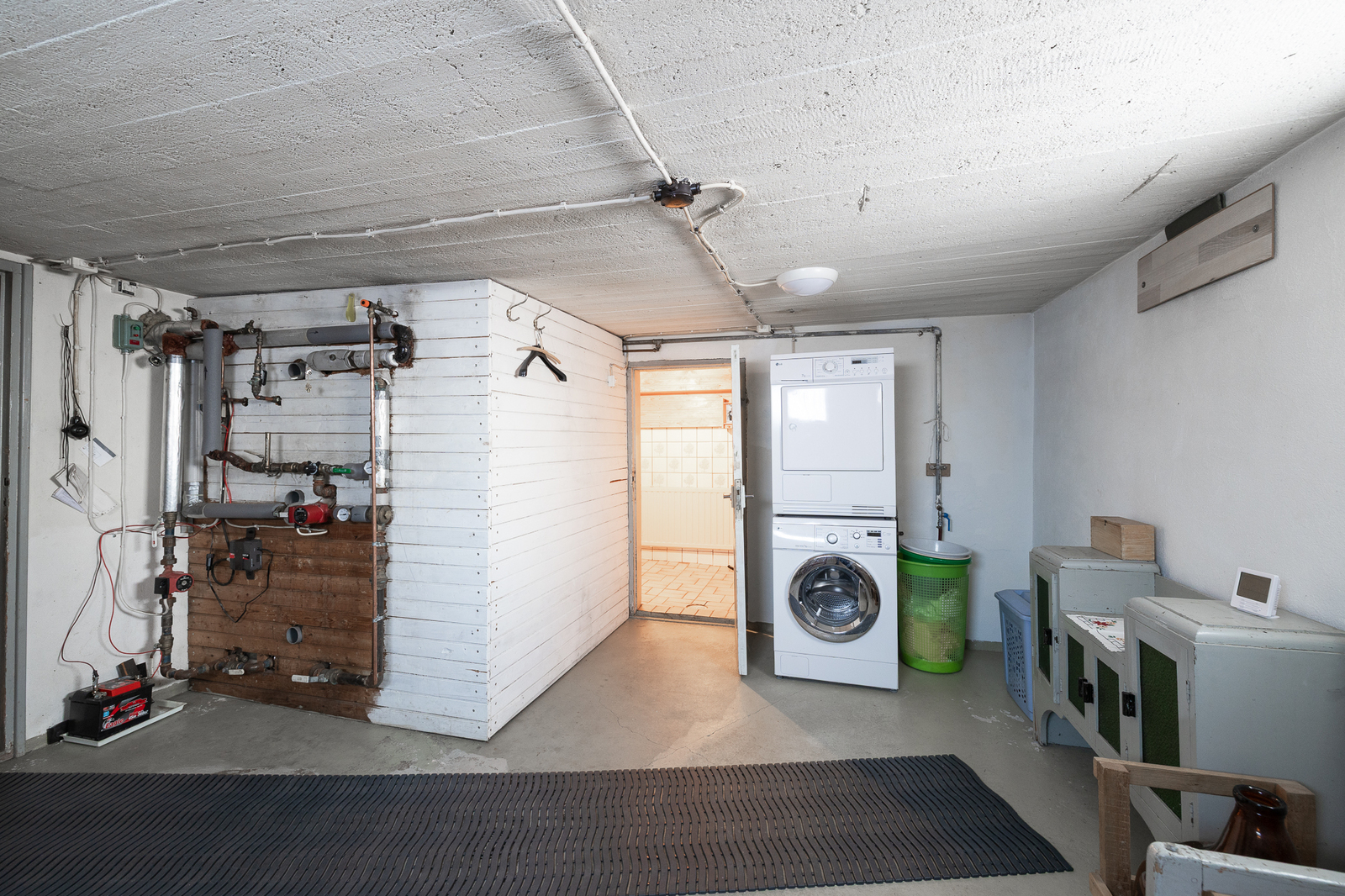 Kodinhoitohuoneen kuvausKellarikerroksessa pesukoneliitäntä.