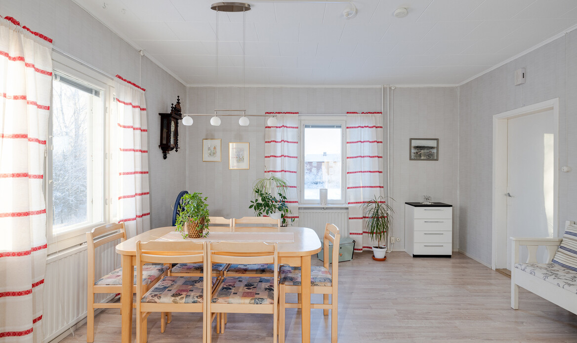 Toista olohuonetta käytetään tällä hetkellä ruokailusalina.