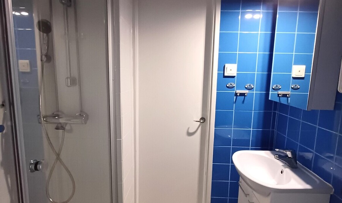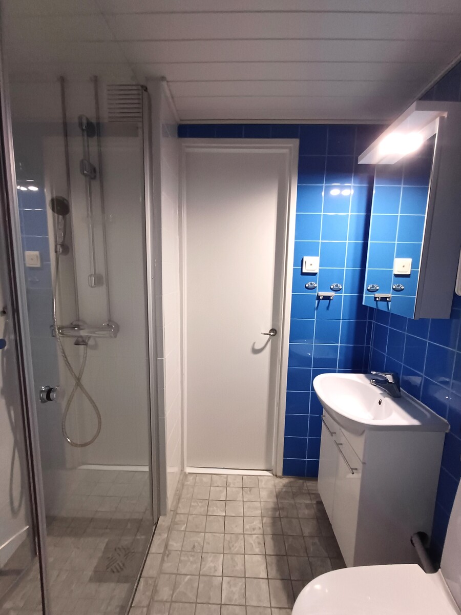 Varusteet: lattialämmitys, suihku, peilikaappi