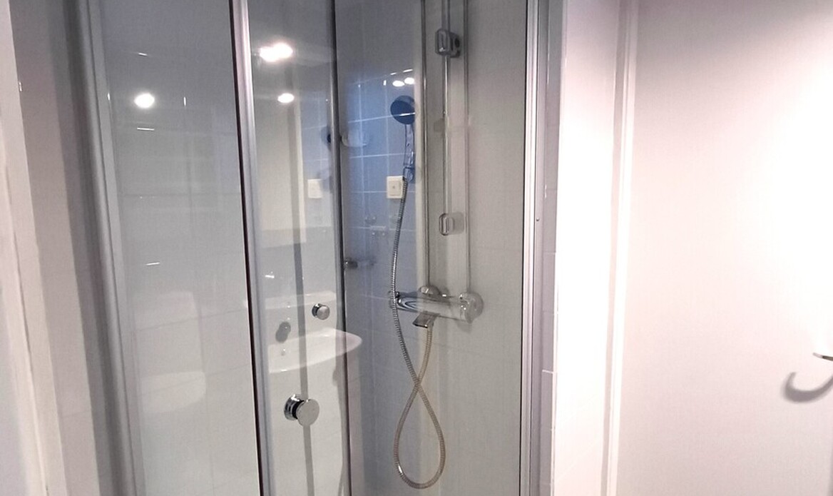 Suihkussa taitto-ovet.