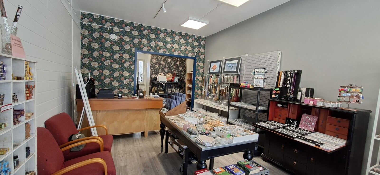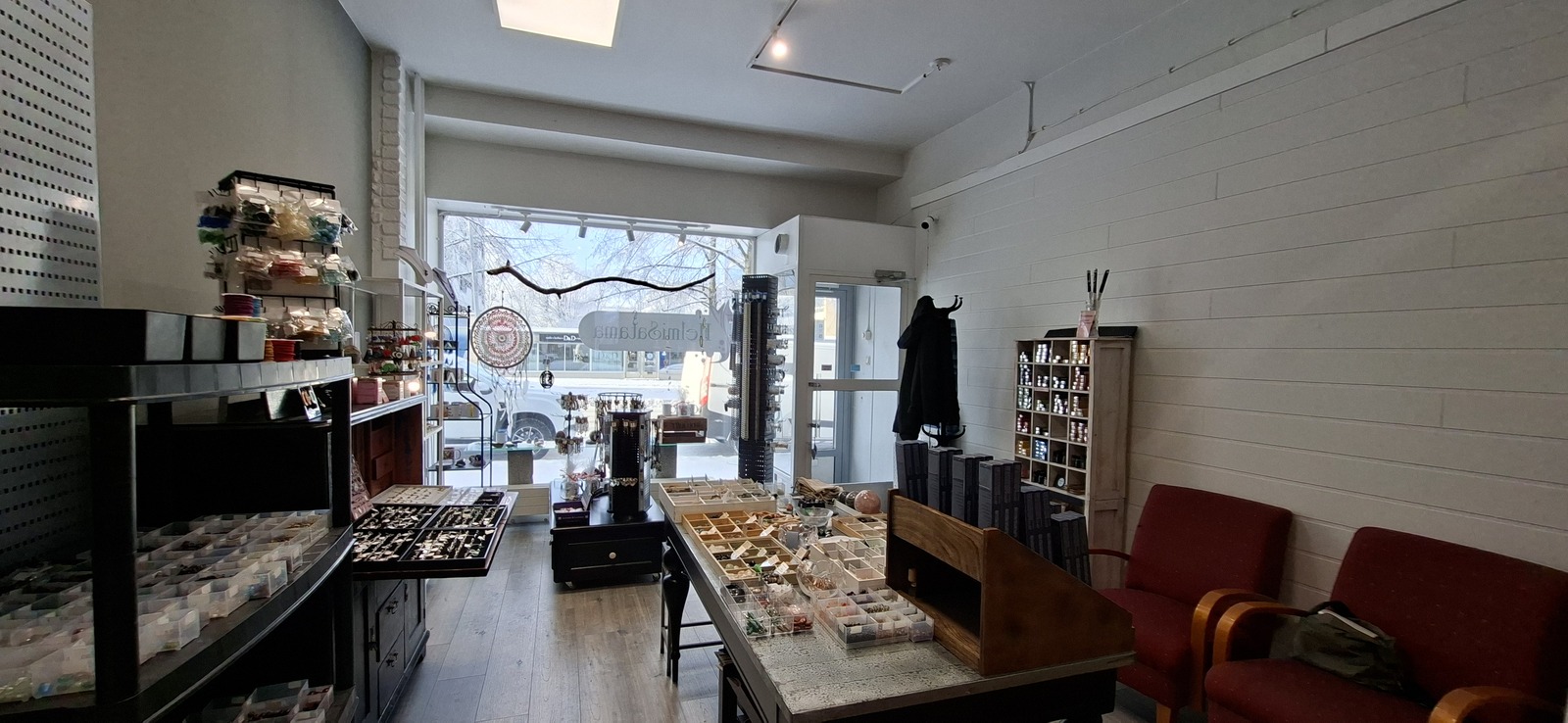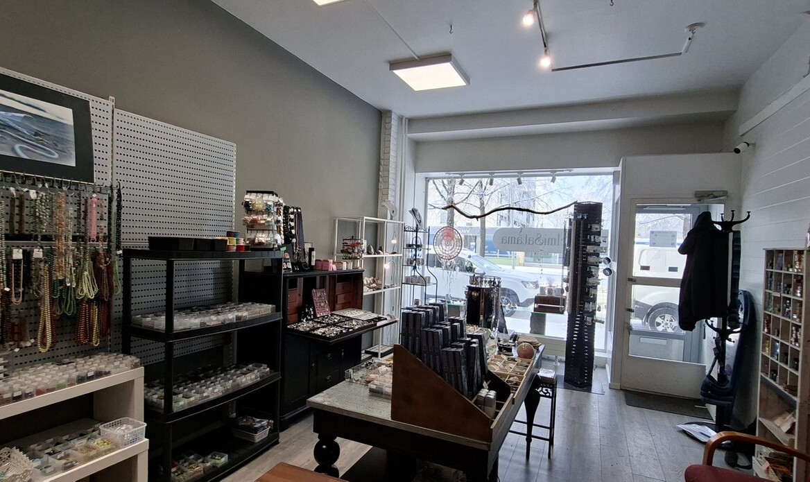 Avara, valoisa tila, jossa on iso näyteikkuna. Kaksi erillistä huonetta ja kaksi sisäänkäyntiä.