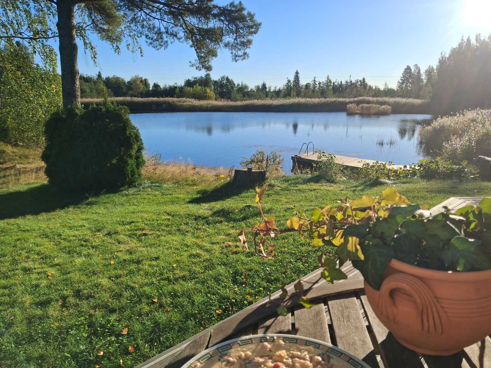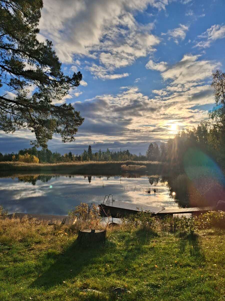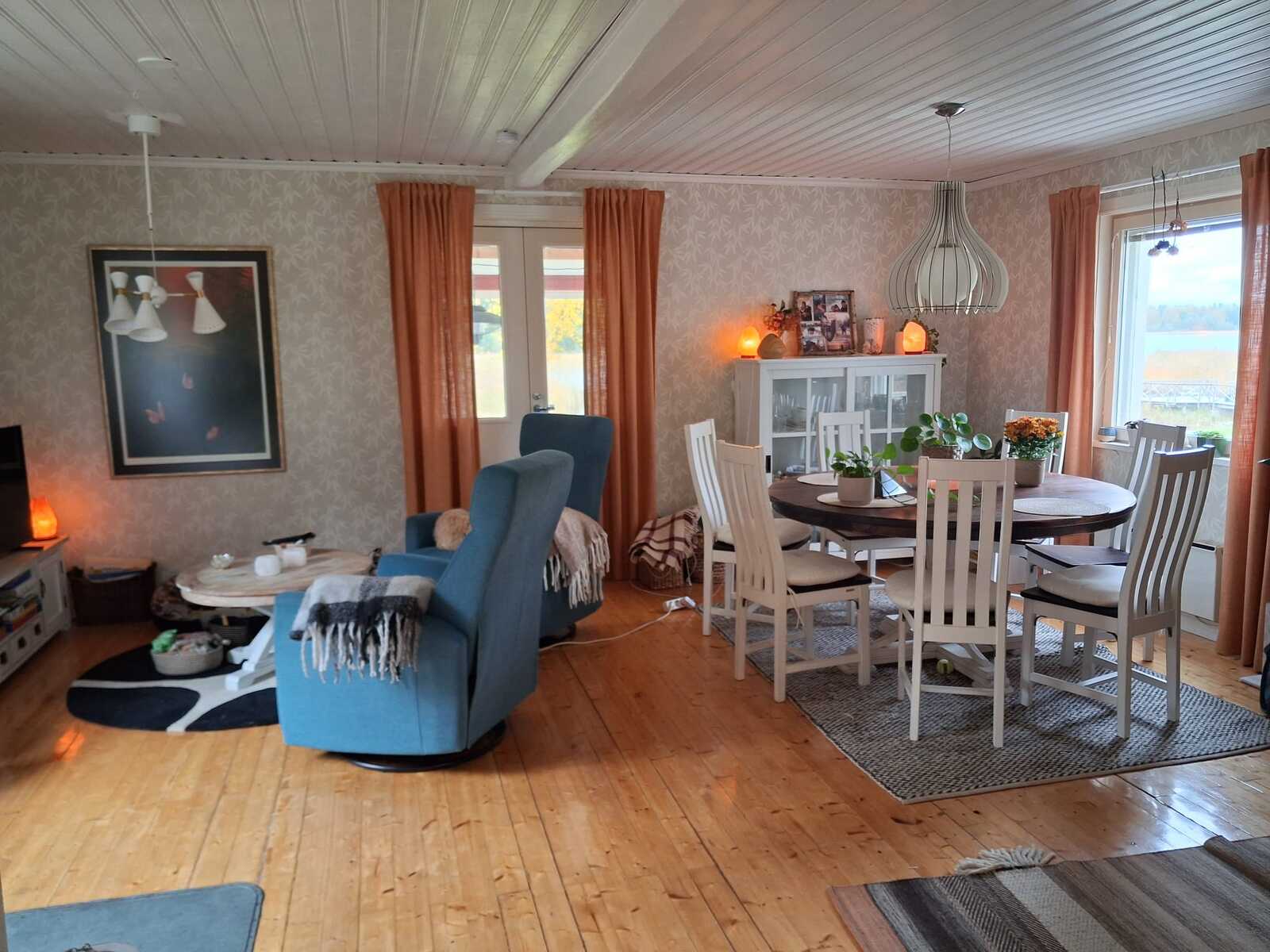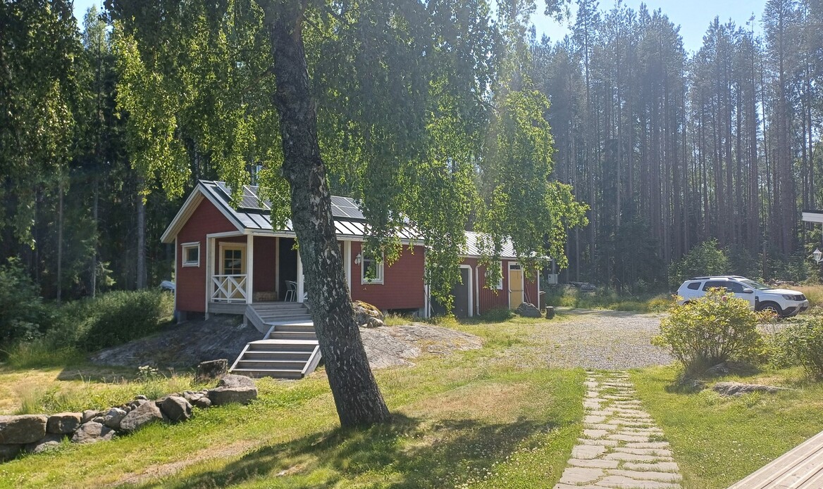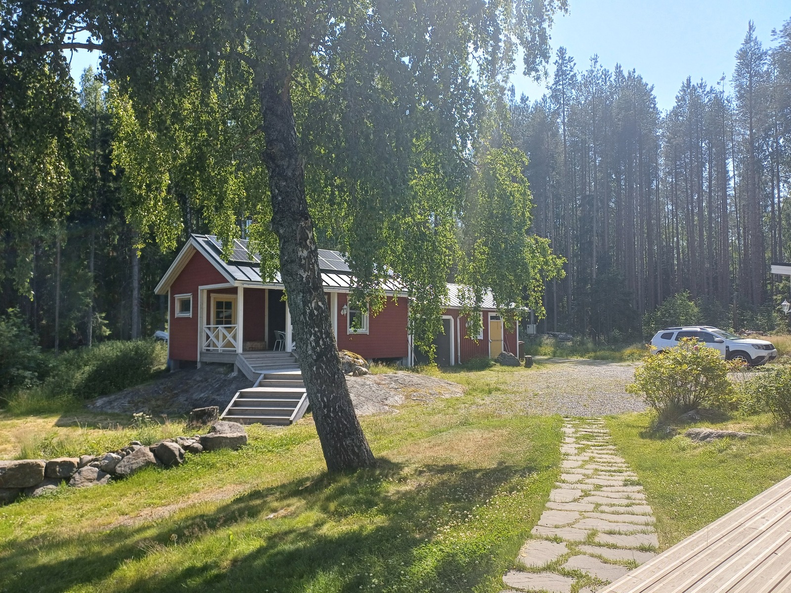 Här hittar du allt du behöver för ett trevligt boende: bra bilväg, el, vatten från borrbrunn, badrum och inomhustoalett, strandbastu och liten stuga med infraröd bastu, en stor terrass, glasveranda, utomhusbelysning, garage och biltak för två bilar. Installerade solpaneler sänker på elräkningar och ökar självförsörjningen. Luftvärmepump installerad på nedervåningen.
