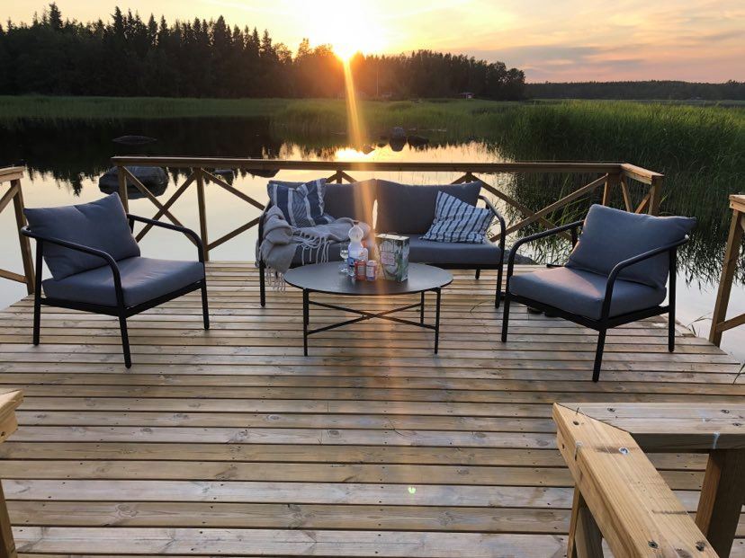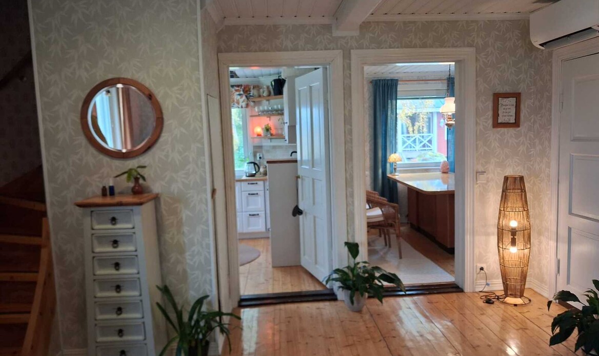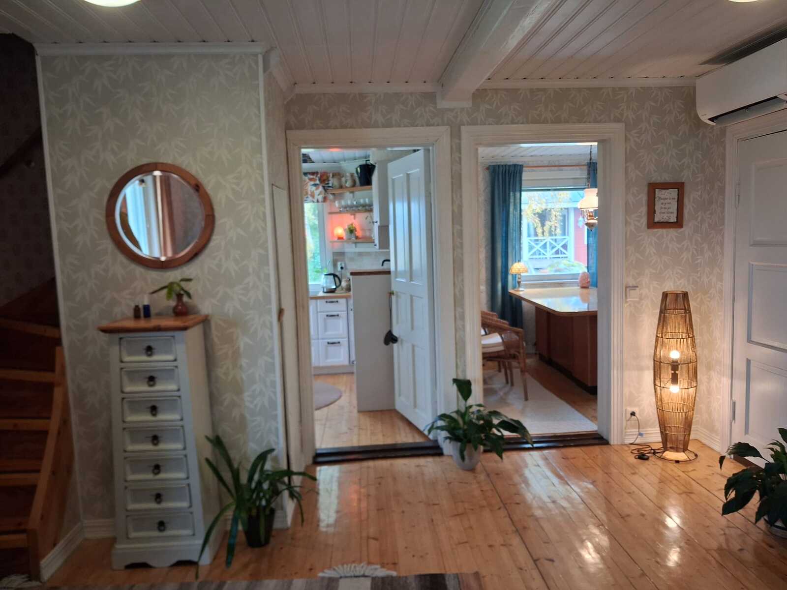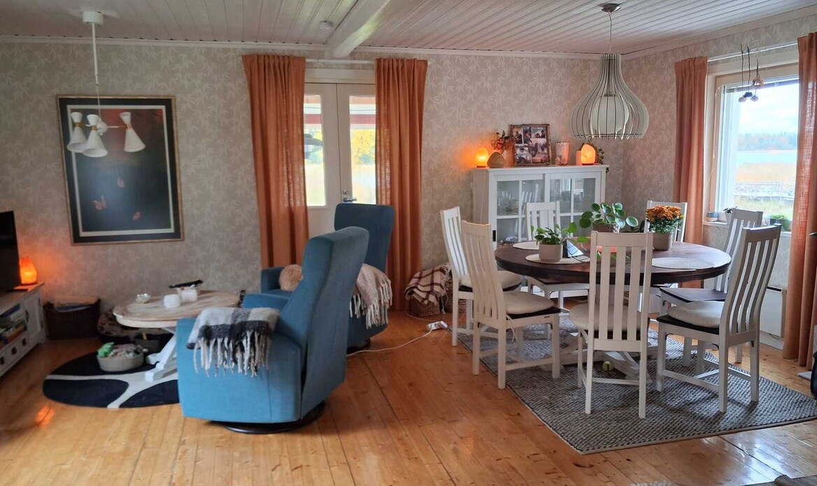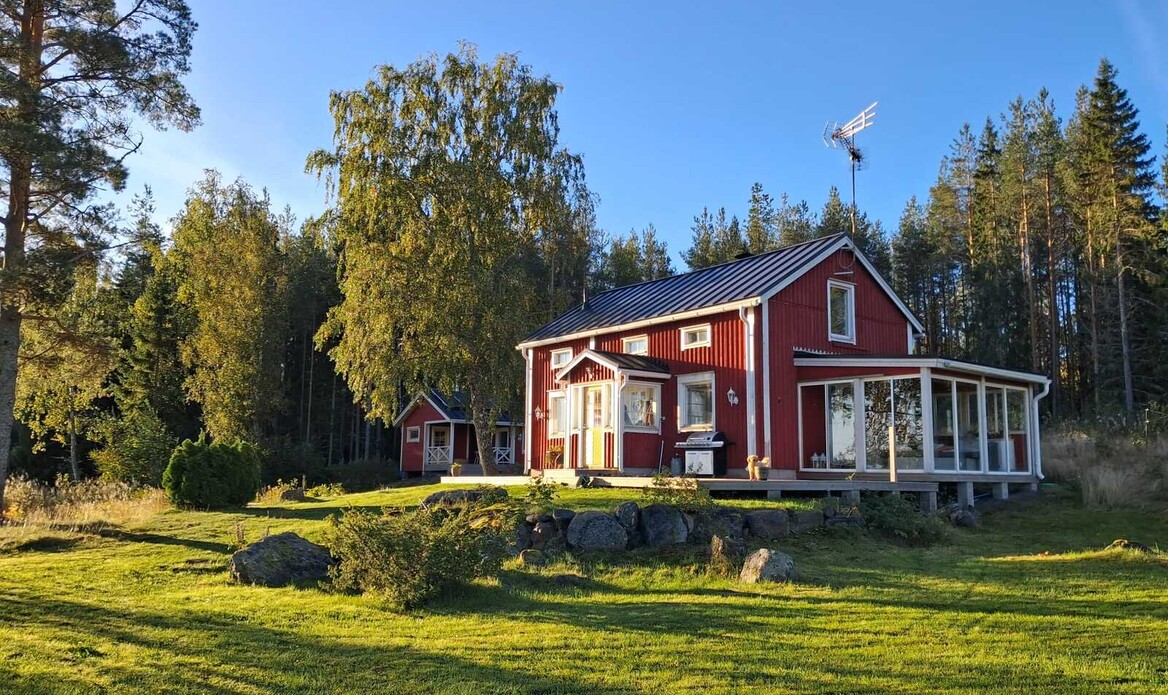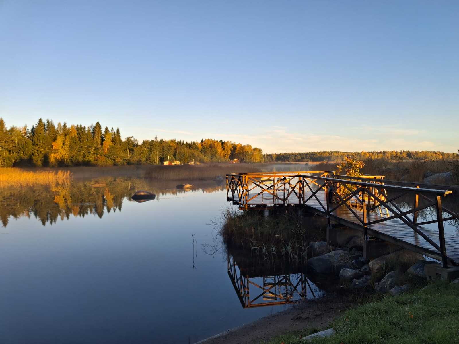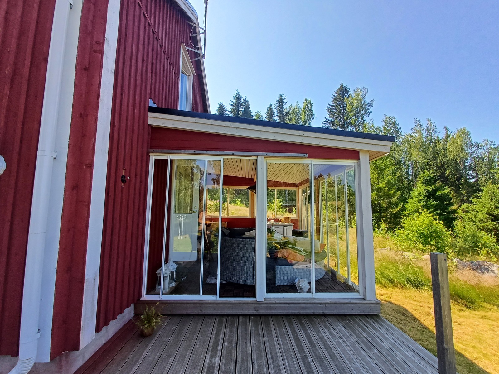 Här hittar du allt du behöver för ett trevligt boende: bra bilväg, el, vatten från borrbrunn, badrum och inomhustoalett, strandbastu och liten stuga med infraröd bastu, en stor terrass, glasveranda, utomhusbelysning, garage och biltak för två bilar. Installerade solpaneler sänker på elräkningar och ökar självförsörjningen. Luftvärmepump installerad på nedervåningen.