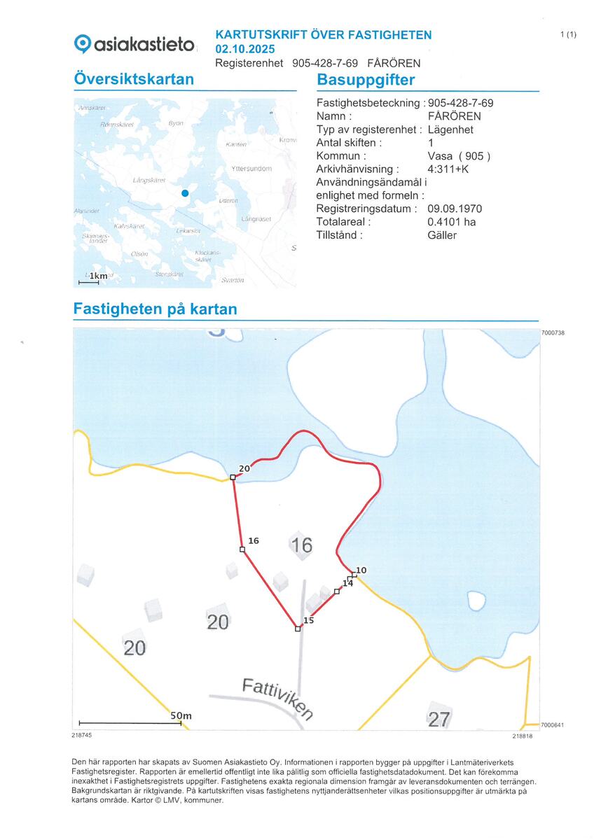 Stor, egen tomt. Vatten på båda sidorna av tomten. Endast ca 18 km från Vasa centrum.