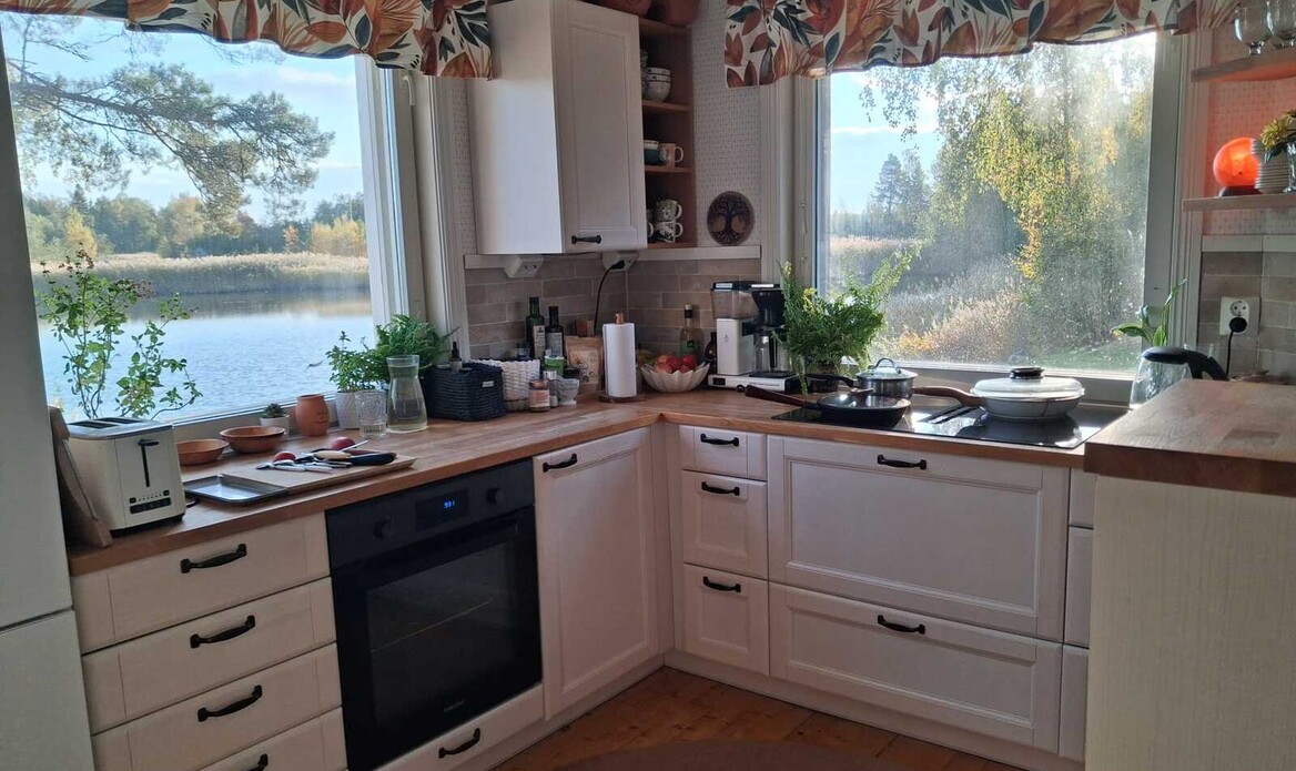 Villan är ett charmigt traditionellt stockhus som har flyttats från byn i Sundom till ett vackert ställe vid vattnet.